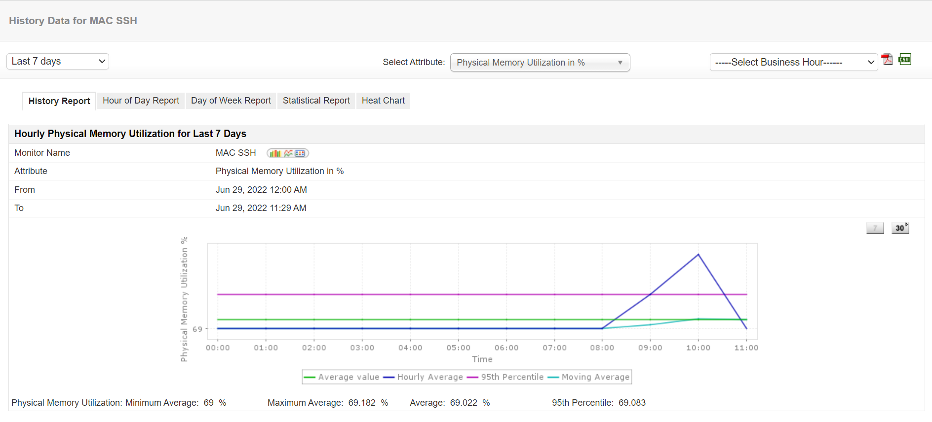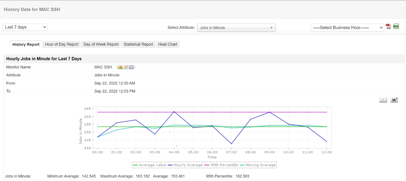 Mantenha o controle do recurso de carga do sistema para medir o número de trabalhos concluídos em um determinado período. Quanto maior for o número dentro de um período, mais rápida será a taxa de transferência de dados do sistema. O Applications Manager oferece dados sobre o número por minuto, a cada 5 minutos e a cada 15 minutos. Os usuários também podem configurar alarmes para serem desativados para qualquer limiar e atributo. Visualize relatórios de histórico na guia de carga do sistema, que exibe dados pesquisados de qualquer período personalizado, desde o dia atual ao ano anterior.