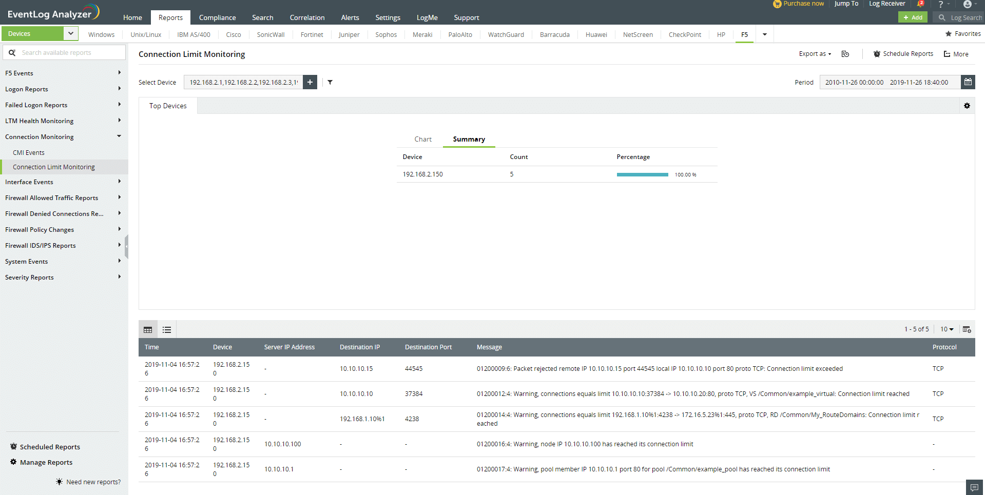 EventLog Analyzer F5 Load Balancer Ferramenta de monitoramento de logs