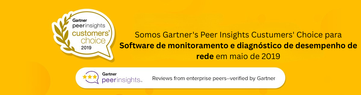 A ManageEngine foi nomeada como a Gartner's Peer Insights Custumers' Choice em maio de 2019 para Software de Monitoramento e Diagnóstico de Desempenho de Rede. O desempenho incomparável de nossas soluções de monitoramento de desempenho de rede (NPM) — OpManager, NetFlow Analyzer e Network Configuration Manager — foi a chave para esse reconhecimento. Em junho de 2019, as soluções de NPM da ManageEngine receberam 90 avaliações, com uma classificação média de 4,5 de 5. Essas avaliações e classificações foram feitas por usuários verificados de nossas soluções!