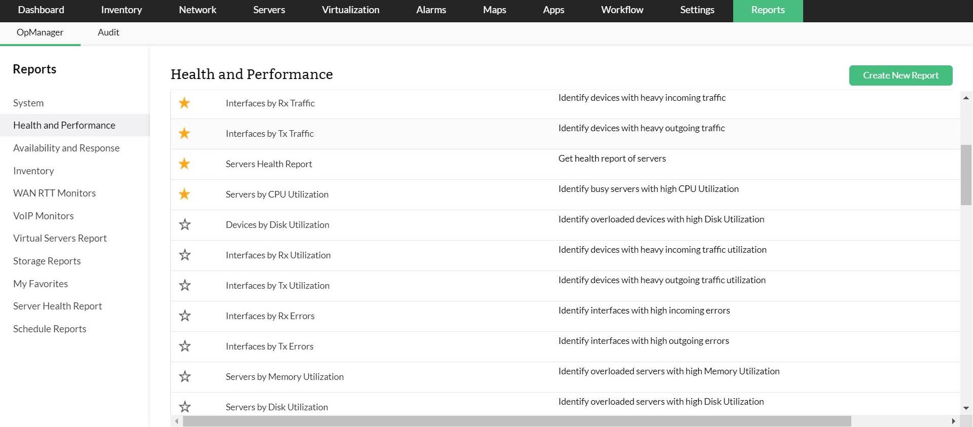 A ferramenta de monitoramento do servidor do VMware do OpManager fornece mais de 70 relatórios prontos sobre CPU, memória, disco, utilização da rede e outras métricas de desempenho do VMware para cada host e VM. Esses relatórios podem ser exportados no formato pdf e xls e são úteis na solução de problemas de picos de utilização (experimente o relatório de utilização da CPU por VM, juntamente com relatórios de tempo de prontidão da CPU), identificando tendências de utilização de recursos e tomando as decisões corretas sobre adição de capacidade. Todos os "melhores" relatórios podem ser programados e enviados automaticamente por e-mail para os destinatários pretendidos.