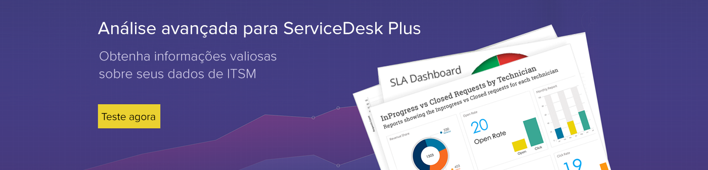 Como usuário de ITSM, você precisa de relatórios inteligentes em seu service desk para ajudá-lo a tomar decisões precisas. De forma perfeita, uma solução que fornece uma representação visual impecável das informações do seu help desk, no menor tempo possível.