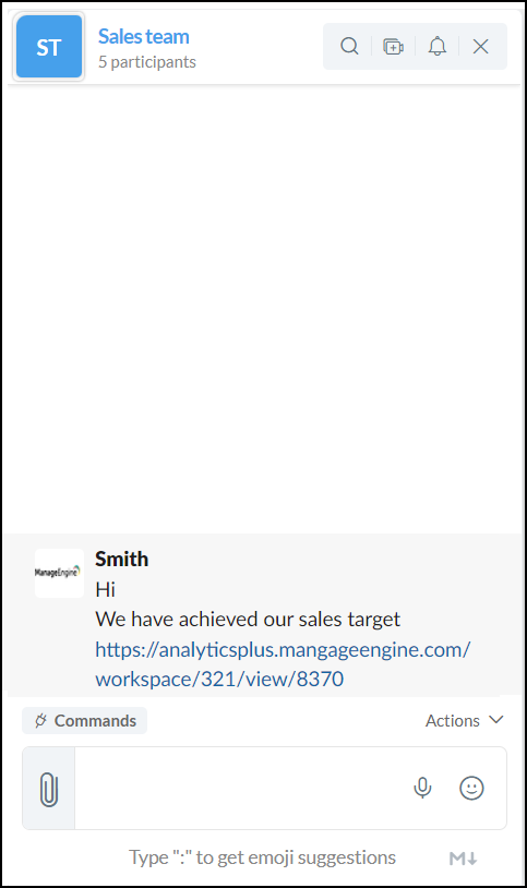 An alert message will be displayed on the corresponding platform when the data alert conditions are met. In the above example, we have specified a webhook request to deliver the message to a Zoho Cliq (a popular chat application from Zoho) channel when the data alert conditions are met.