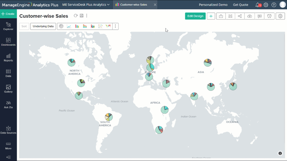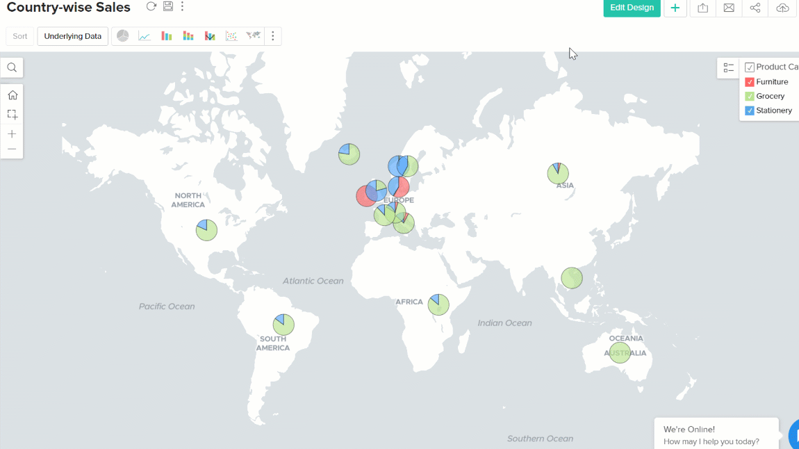 Analytics Plus allows you to visualize geographical data using map charts. To create a map chart, your data set should contain location-specific columns. During data import, Analytics Plus auto-identifies the columns that contain geographical data in your data set.