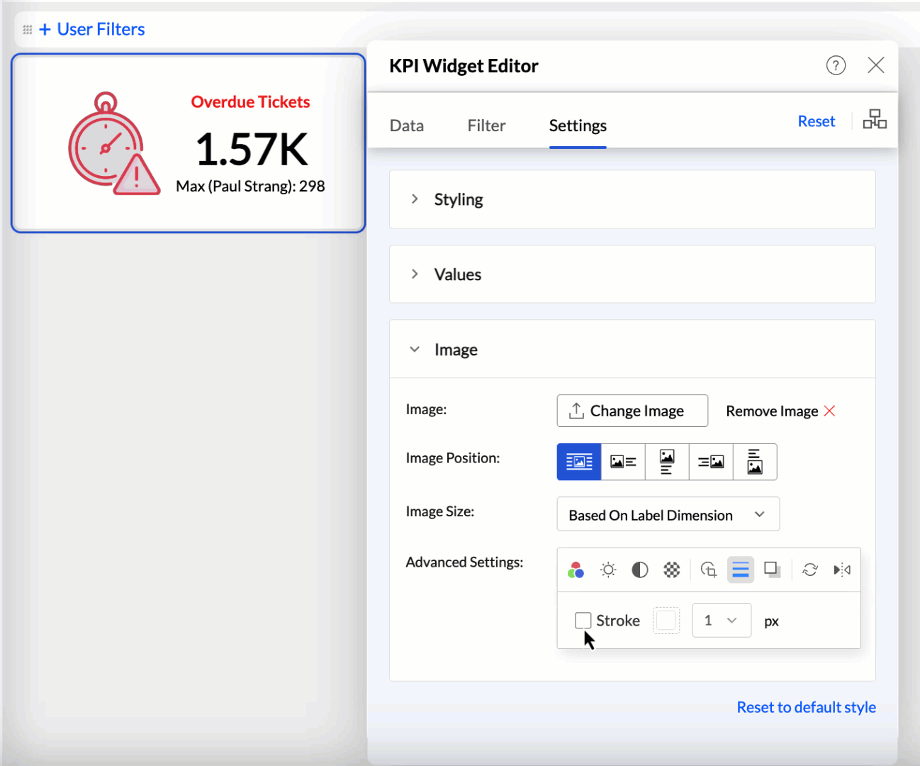 Easily change the color of the image to suit the dashboard color theme. You can also apply the Font color to the image.