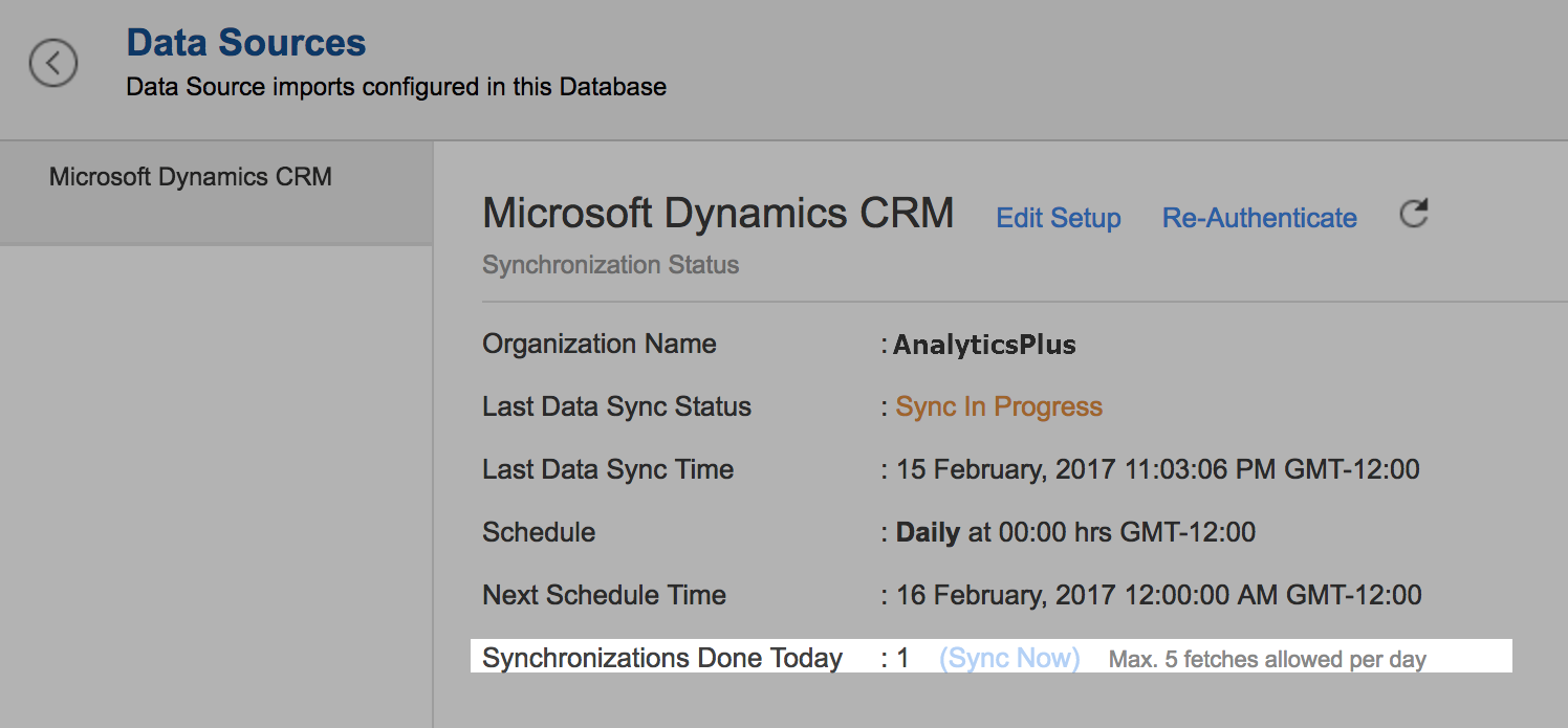 • In the Microsoft Dynamics CRM Data Sources tab that opens, click the Edit Setup link.