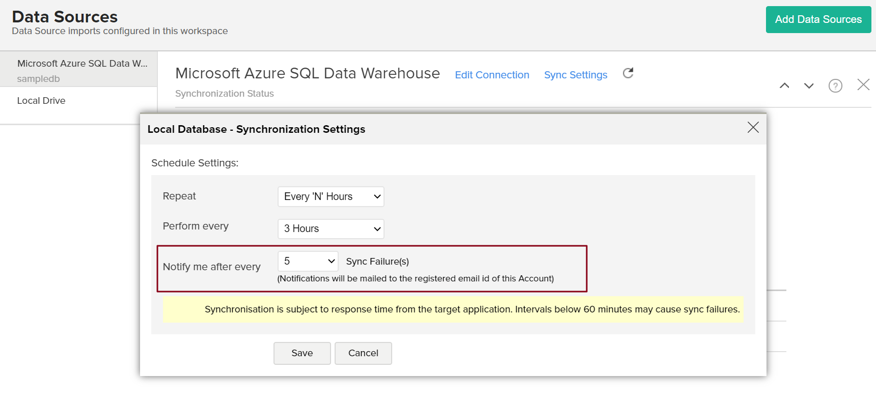 • Specify the number of consecutive import failure after which you are to be notified using the Notify me after every 'N' Sync Failure (s) section.
