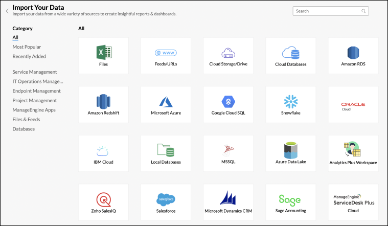 You can also use ManageEngine Databridge, a lightweight independent utility that helps you to bridge your data source directly with Analytics Plus cloud for hassle-free data import. Click here to learn more about the list of supported databases.
