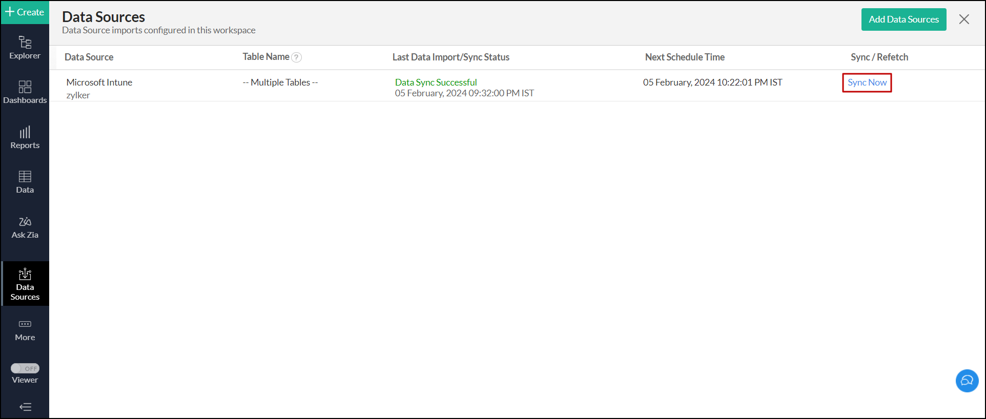 Yes. To do this, click the Data Sources option from the side panel. In the page that appears, navigate to the Microsoft Intune source and click the corresponding Sync Now button.