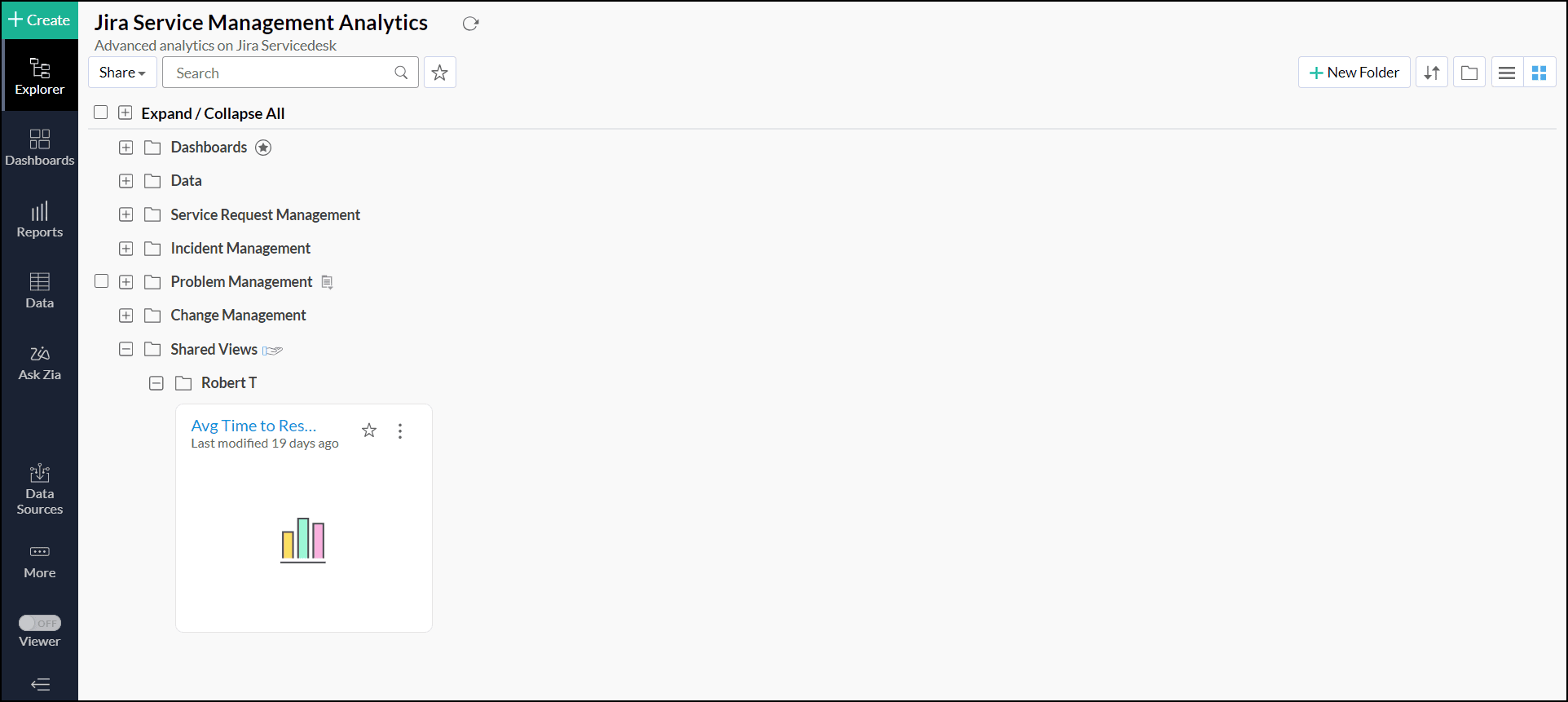 Views shared by users will be listed under the Shared Views folder for administrators, along with the name of the user who shared each report.