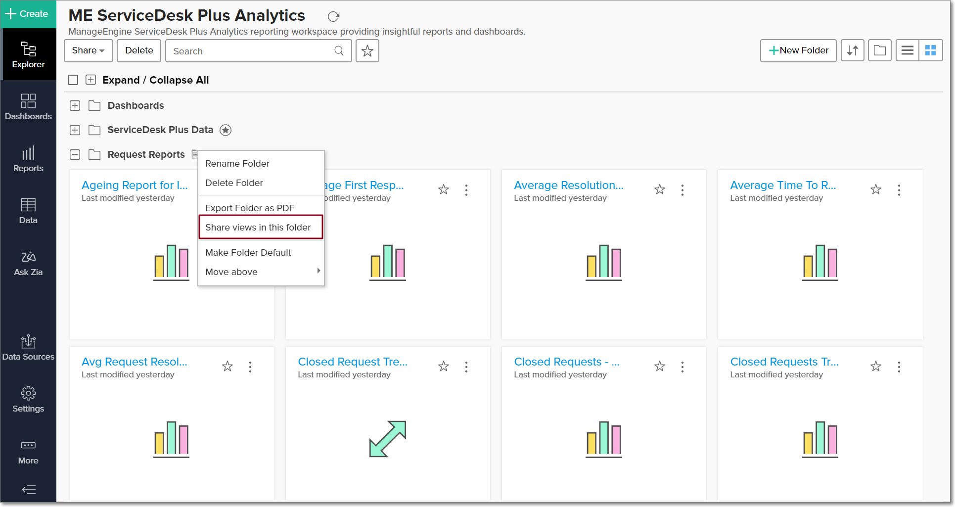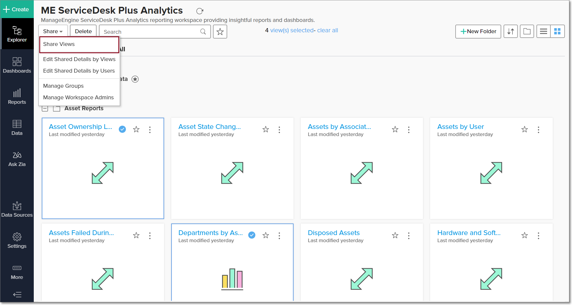 In Analytics Plus, you can easily share your data, reports, and dashboards to any user privately. These shared views can be accessed online by the shared users, and will have the current data and reflect the latest changes made.
