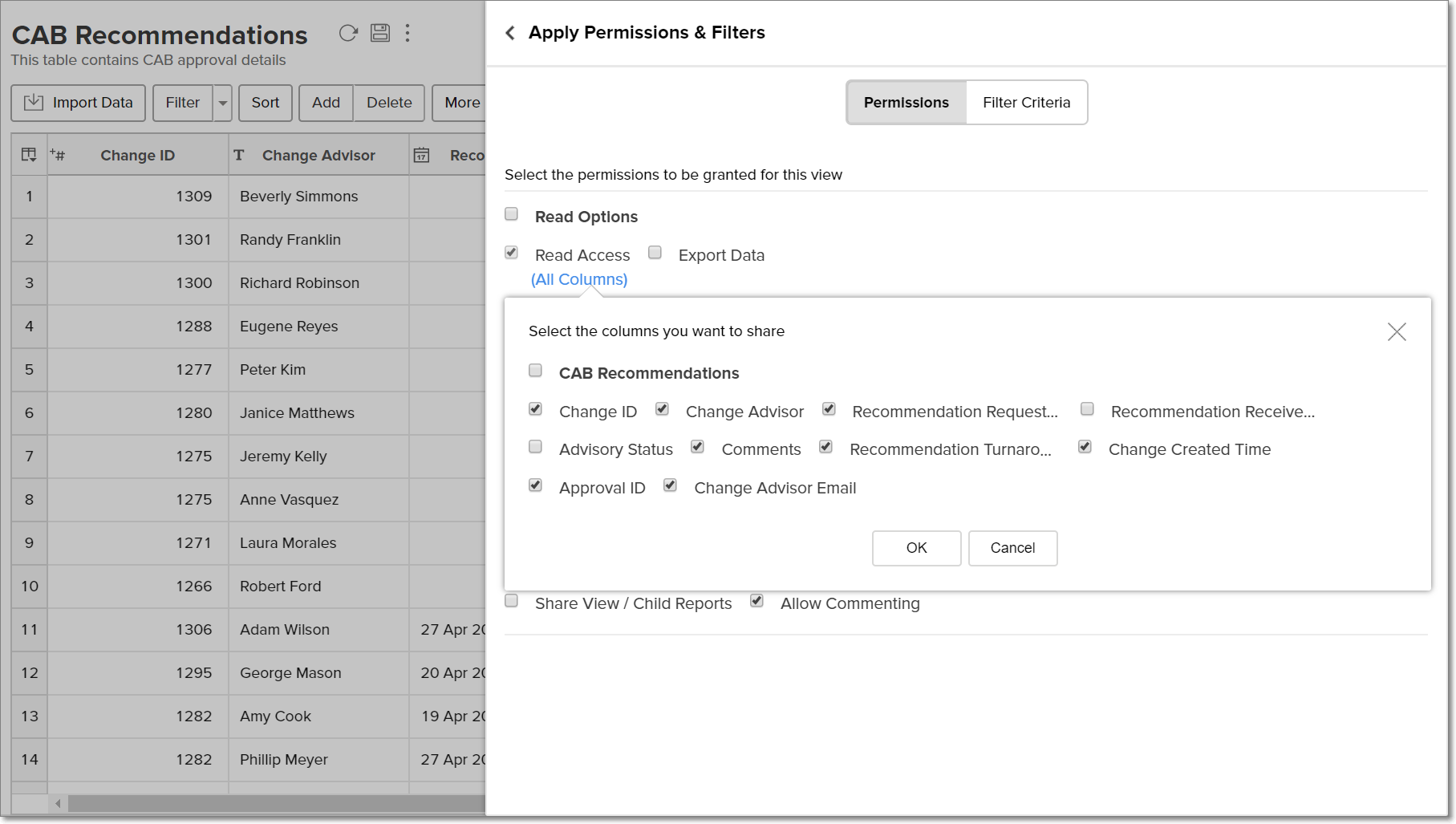 Proceed to share the table. Shared users can now access only the specified columns and create reports over the same.