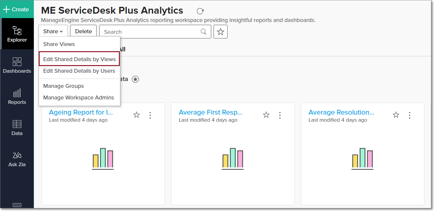 There are three ways to edit the permissions configured for your shared views in Analytics Plus.