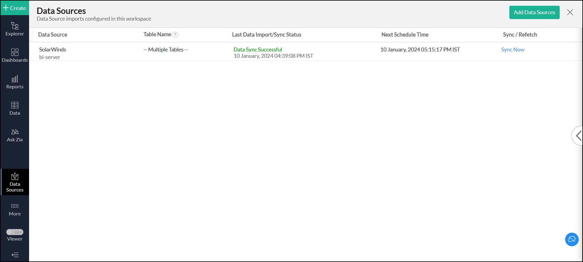 - Open the required workspace, and click the Data Sources option from the side panel.