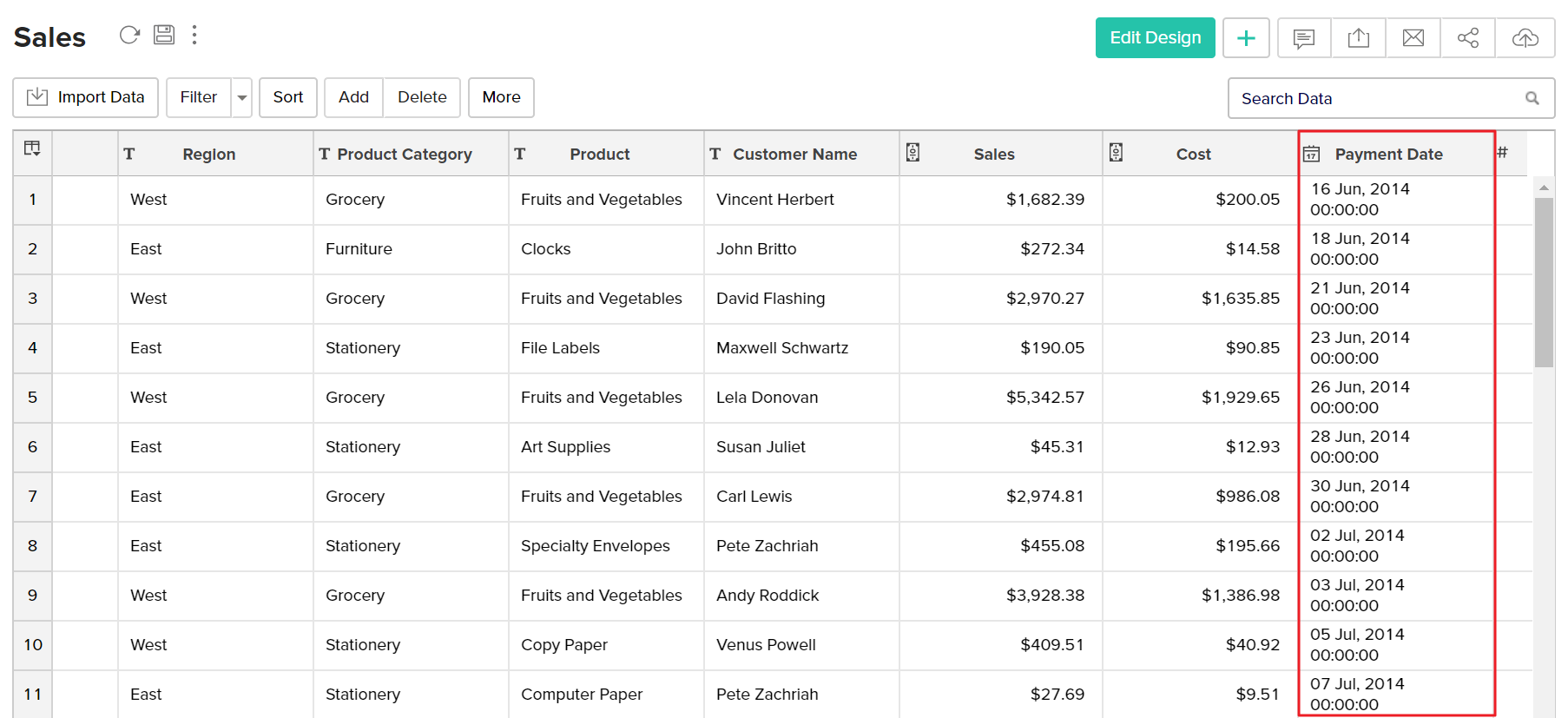 The result of Aggregate Formulas will not be added as a column in the base table. It will be listed in the column panel while creating reports. You can access (view) or edit it by clicking Add > Edit Formulas in the toolbar. Viewing & Editing Formulas is discussed in the next section.