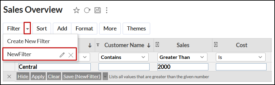 Choose the required filter condition from the dropdown, provide the filter value and click Apply.