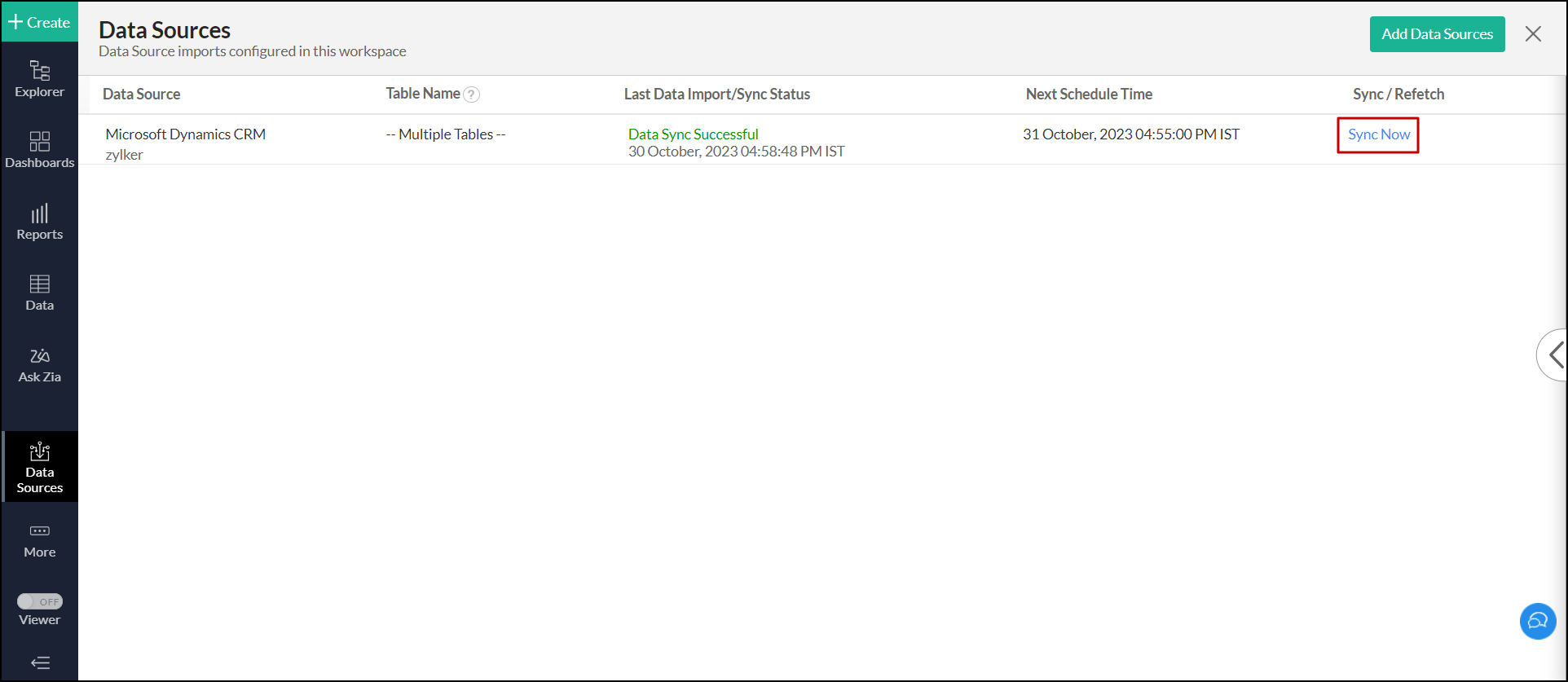 Yes. To do this, click the Data Sources option from the side panel. In the page that appears, navigate to the Microsoft Dynamics CRM source and click the corresponding Sync Now button.