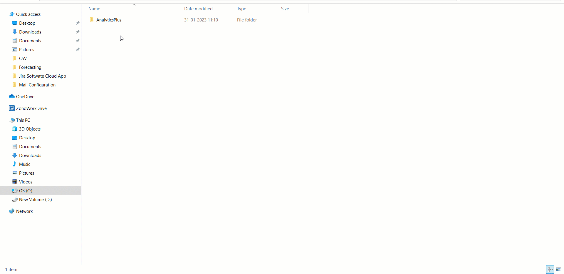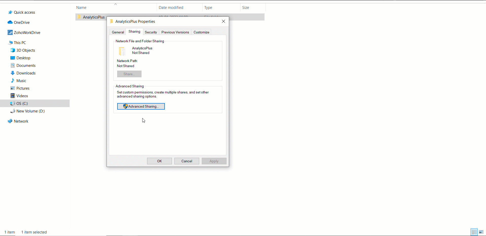 - Navigate to the <Analytics Plus home folder>, right-click the folder, and select Properties.