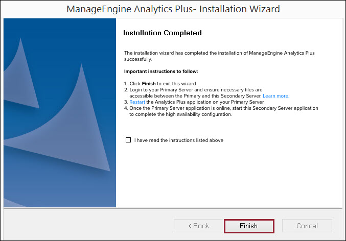 Note: Analytics Plus users on build 4750 or above can configure high availability by simply installing a standby server. Click the corresponding links to learn more about configuring the standby server in Windows and Linux installations respectively.