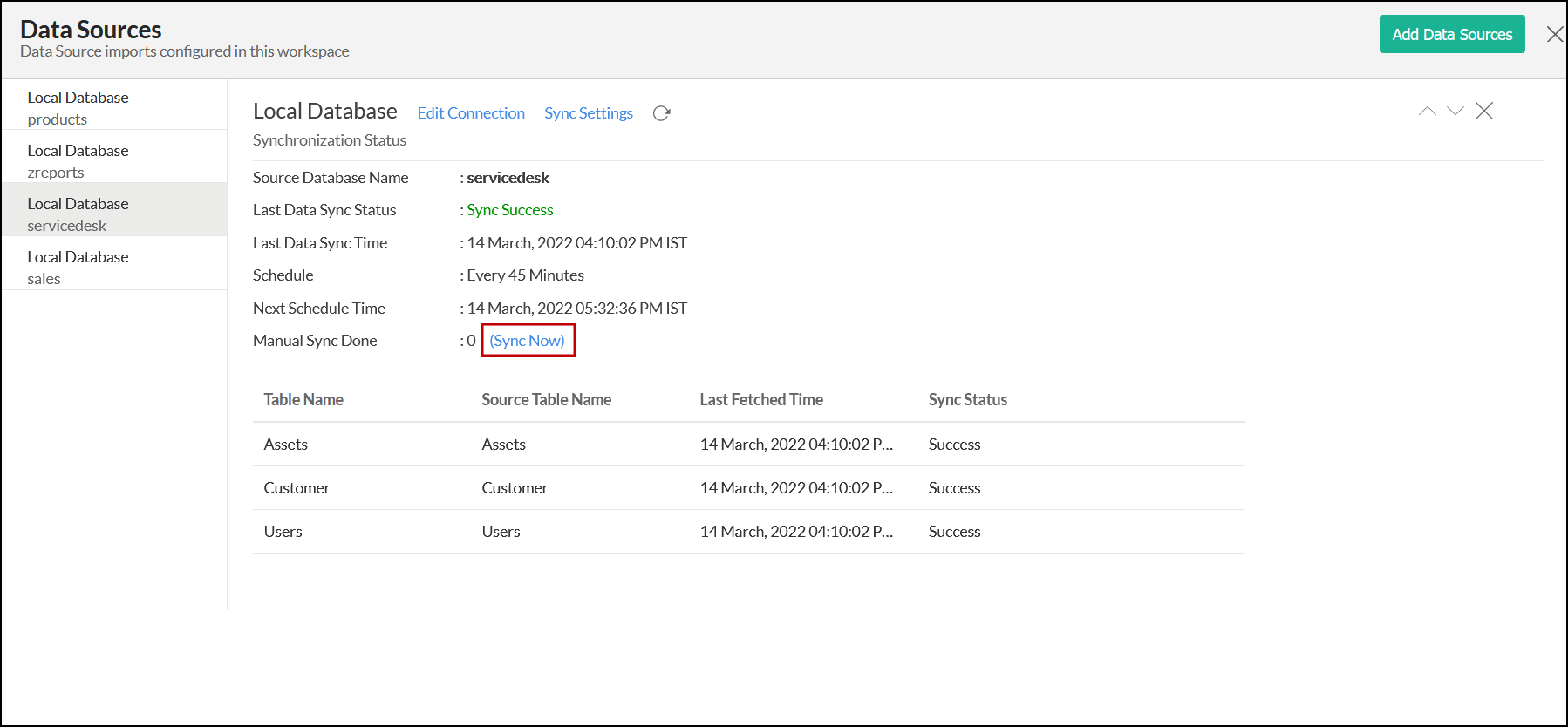 Click on the Sync Now link to fetch entire data from the source instantly.
