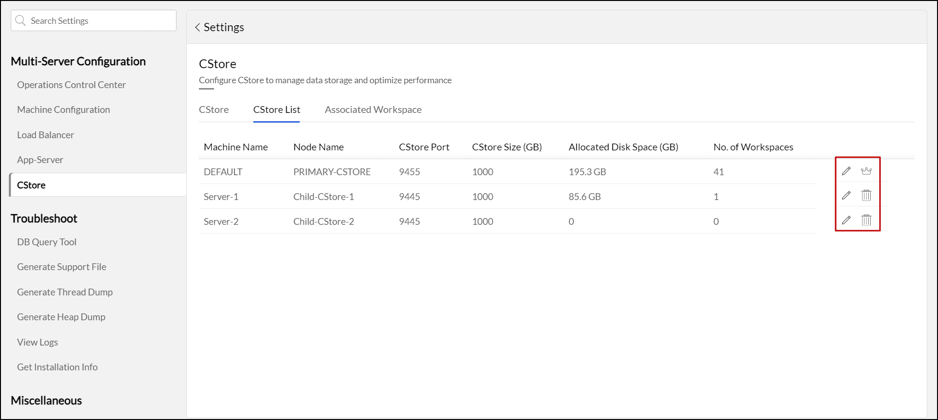 You can view all added CStore details under the CStore List tab. From this tab, you can: