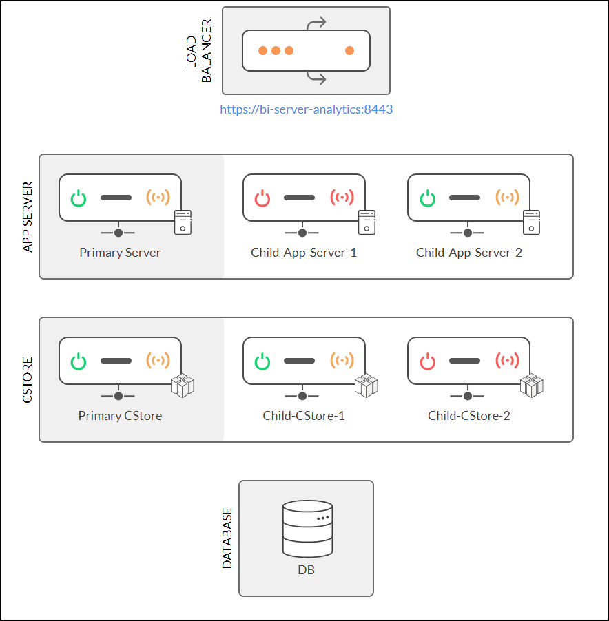 - Green: Indicates active connection between the App Server and CStore nodes.