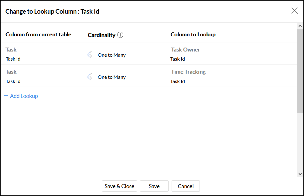 Yes. To do this, import or add a new table to the Teamwork Projects workspace and define a lookup relationship between the added data and the existing data in the workspace. To define a lookup relationship between two tables, it is essential that the tables have at least one column in common between them. Follow the below steps to establish a lookup relationship.