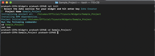 - Enter the Project Name. The sample project will be created in the respective folder directory.