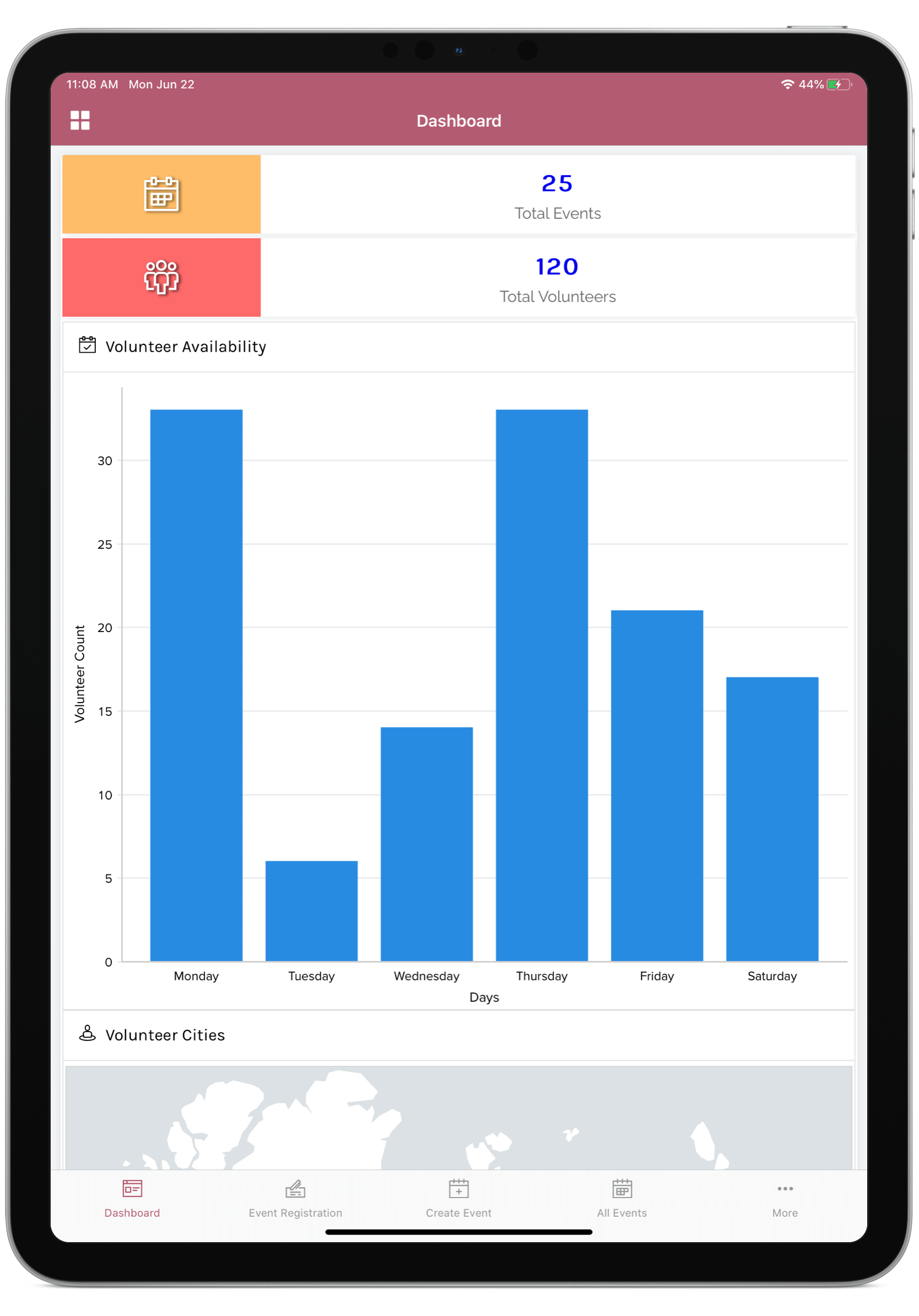 Below is an example of how the bottom bar theme looks like in an iPad device. The sections and their components can be accessed from the bar at the bottom of your device. Refer to this page to set a theme for your application when accessed via tablet.