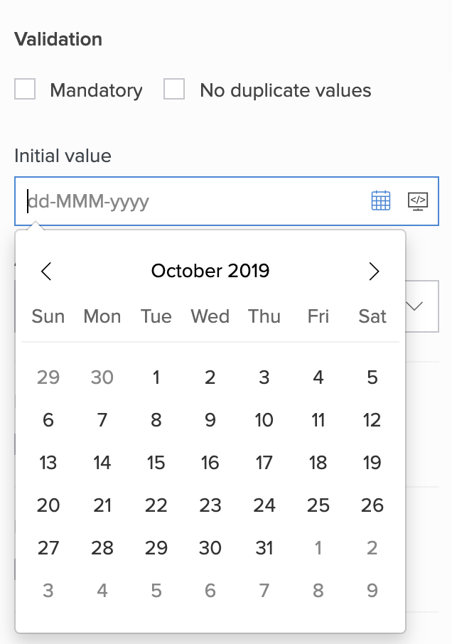 - Click the input box below Initial value, then set the required date using the date picker. Alternatively, you can type the required date value.