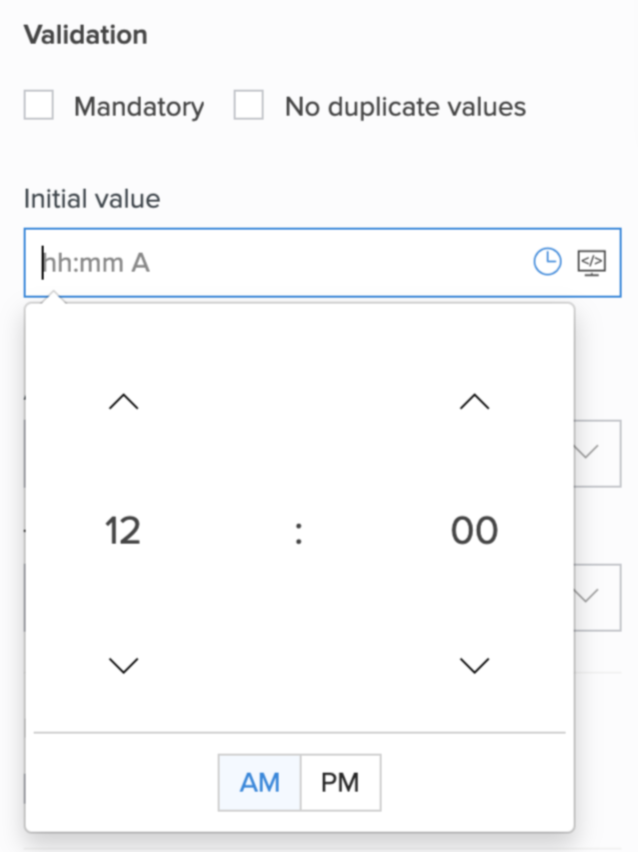 - Click the input box below Initial value, then set the required time using the time picker. Alternatively, you can type the required time value.