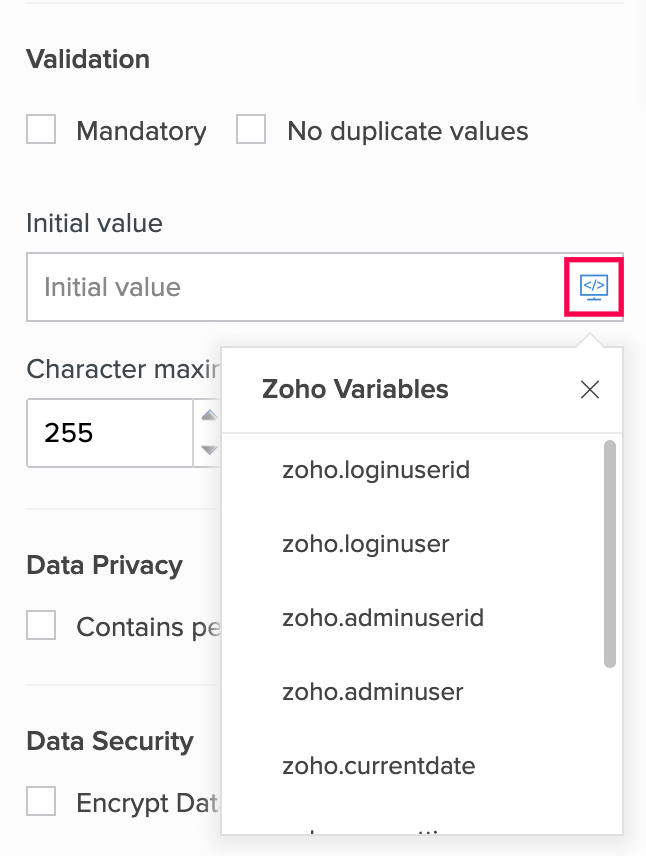 Refer to this page to learn about the Initial value field property