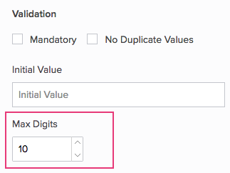 If you set Max Digits with a value greater than 19, ManageEngine AppCreator will display the following prompt: