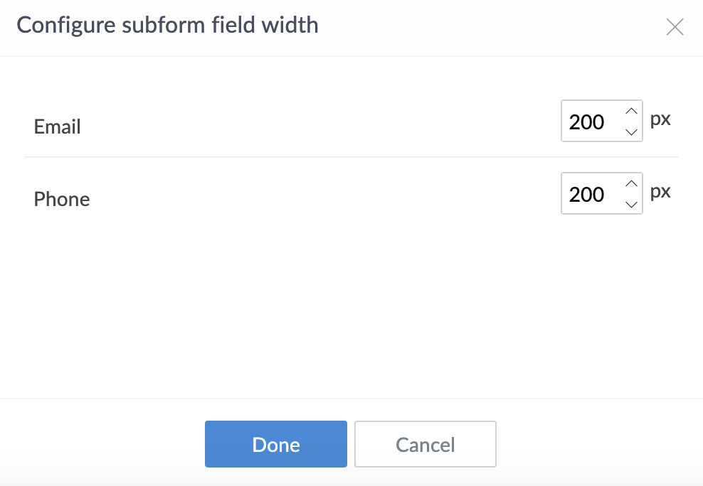 - If you select Adjust field width manually, you will need to set the field width in pixels: