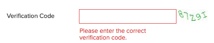 - Users must type the code in the input box next to it. If they do not type, or incorrectly type the displayed code, they will be prompted as follows: