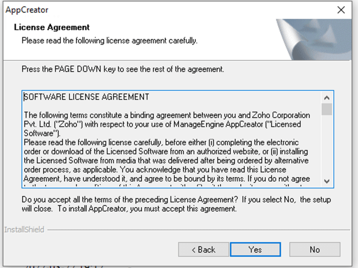 - Double click the downloaded file. Click Next in the InstallShield Wizard for ManageEngine AppCreator.