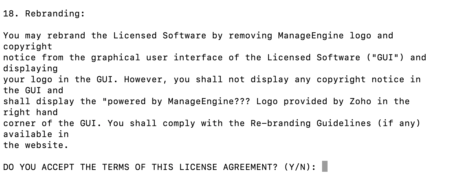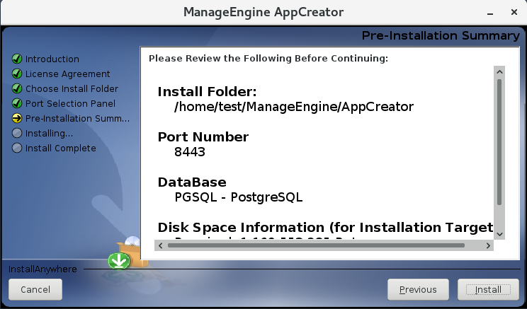 - Execute the installation file using the following command:./ManageEngine_AppCreator.bin -i console