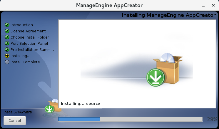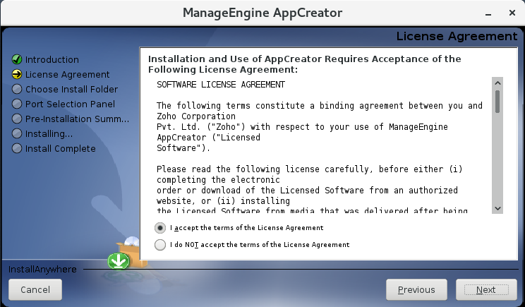 - Execute the installation file using the command:./ManageEngine_AppCreator.bin