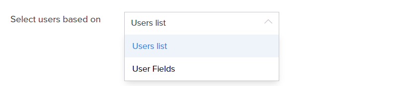 - Select Users based on Specify the users that you want to deliver mobile notifications to. Select Users list to choose shared users or select Input fields to choose from Form fields containing user information.