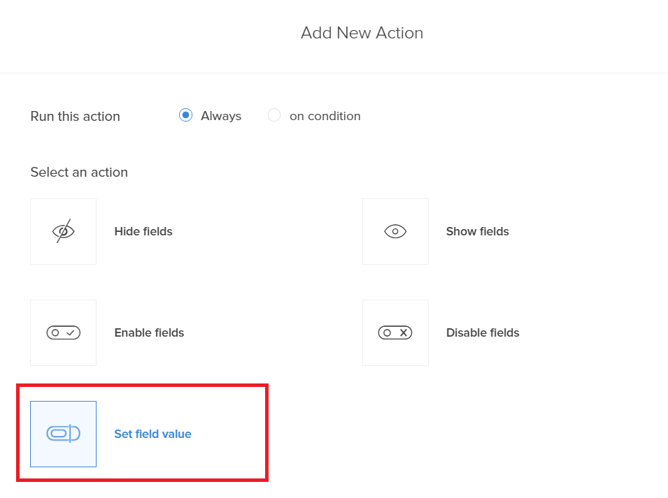 - Choose the Set Field Value action.