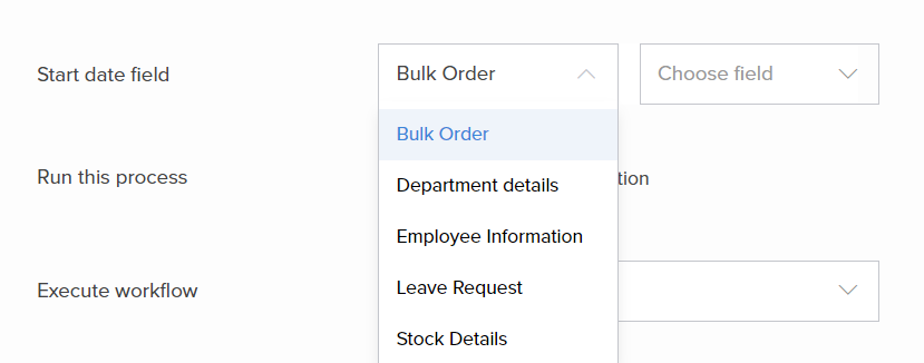 - Choose the End Date Field. The dropdown will list all the date fields in the form.