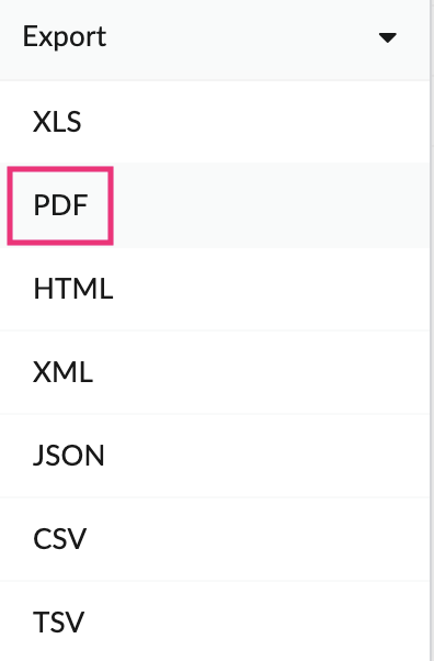 - You can export them in various file formats such as XLS, PDF, HTML, XML, JSON, CSV, and TSV.