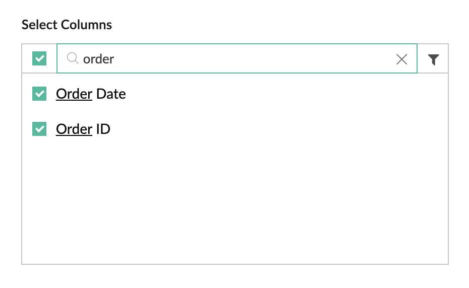 - You can also search the required column (field) name in the search bar at the top and select them.