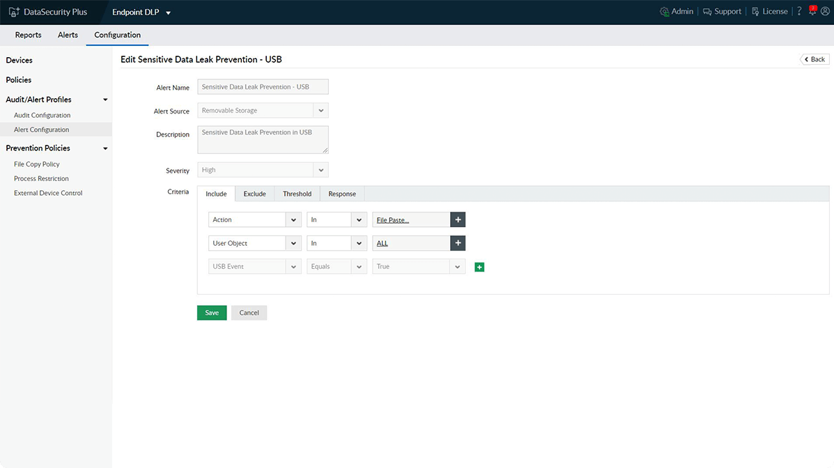 Prevent the movement of business-critical data to external storage devices with the help of USB copy protection functionality.