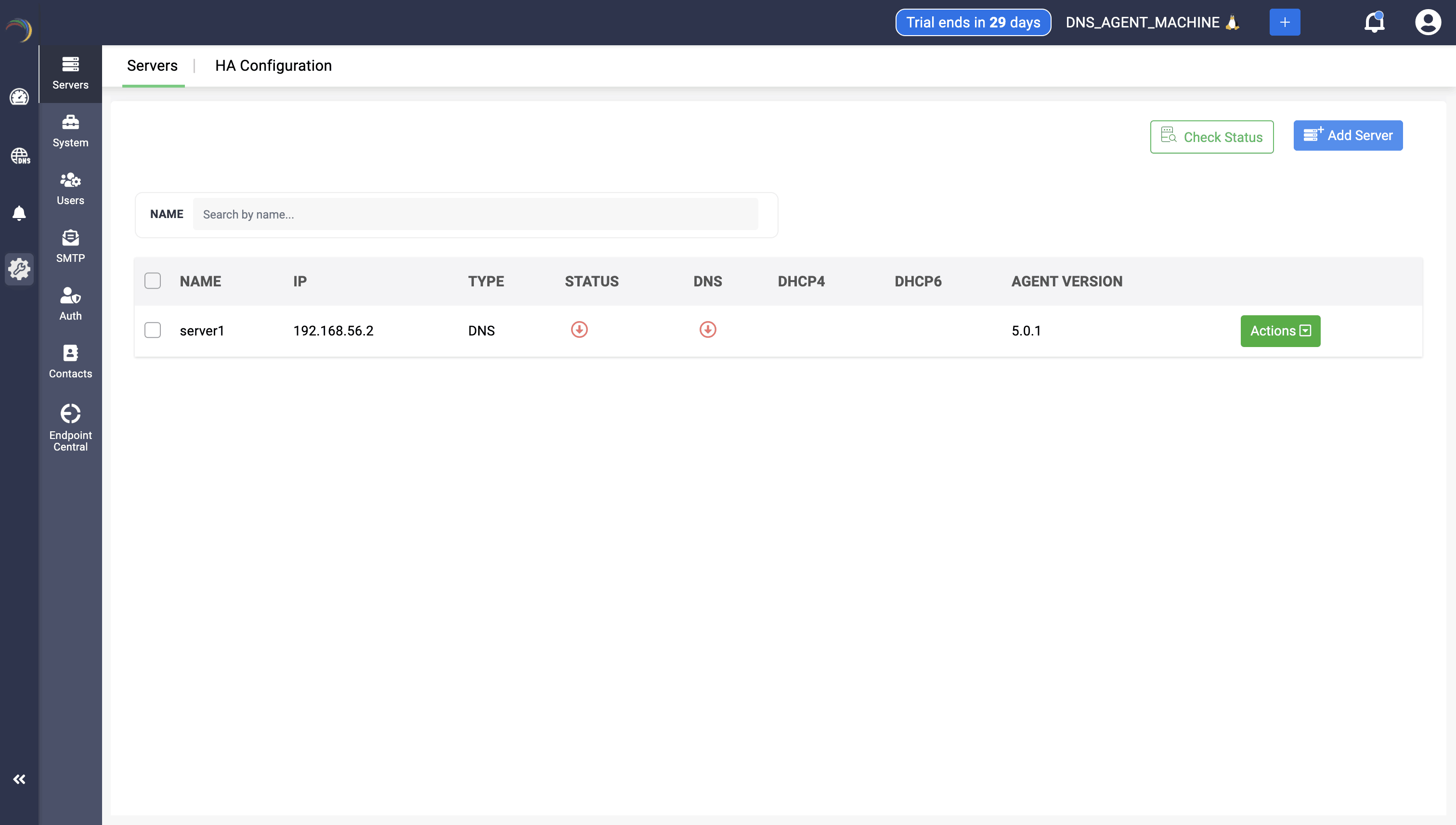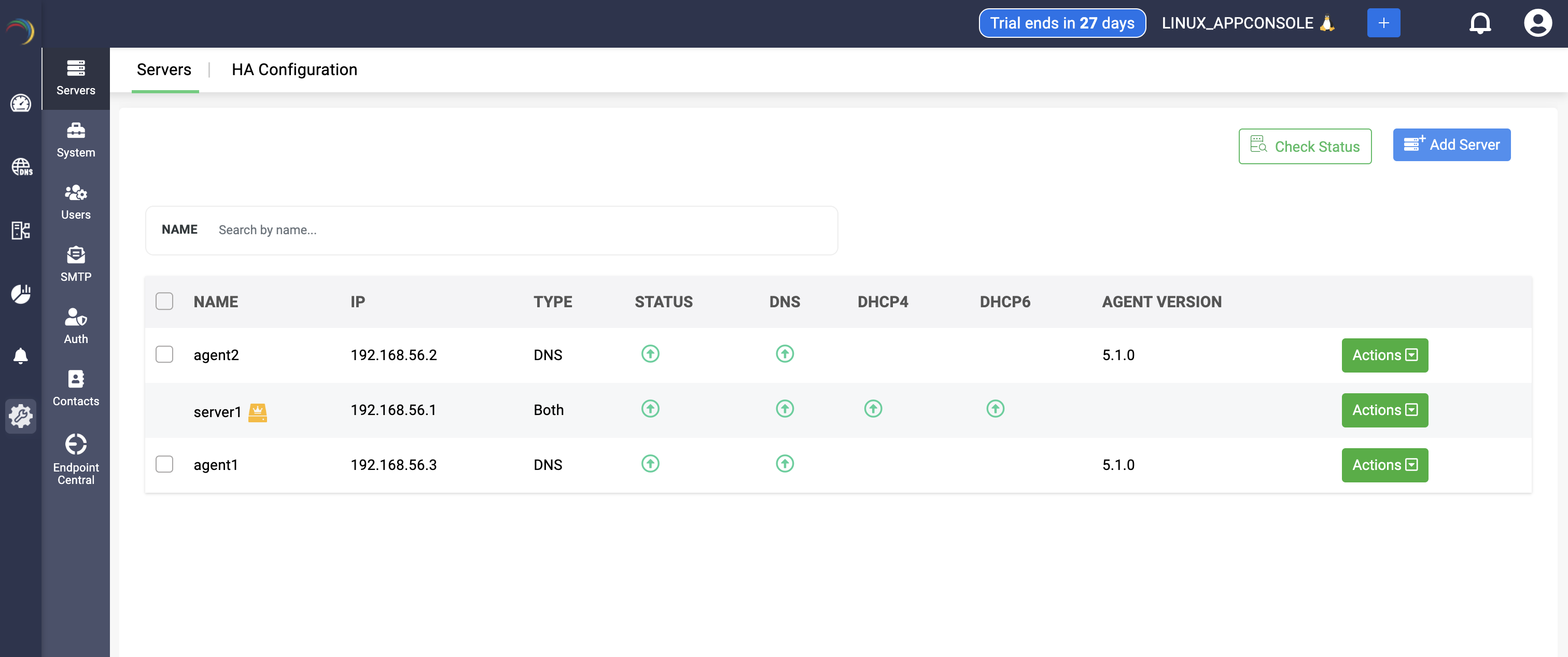 DDI Central now allows users to update the status of their servers and associated services by clicking the Check Status button after selecting the desired server. This action refreshes and displays the current status of both the server and the services it hosts. Users can select one or multiple servers to update their status simultaneously.