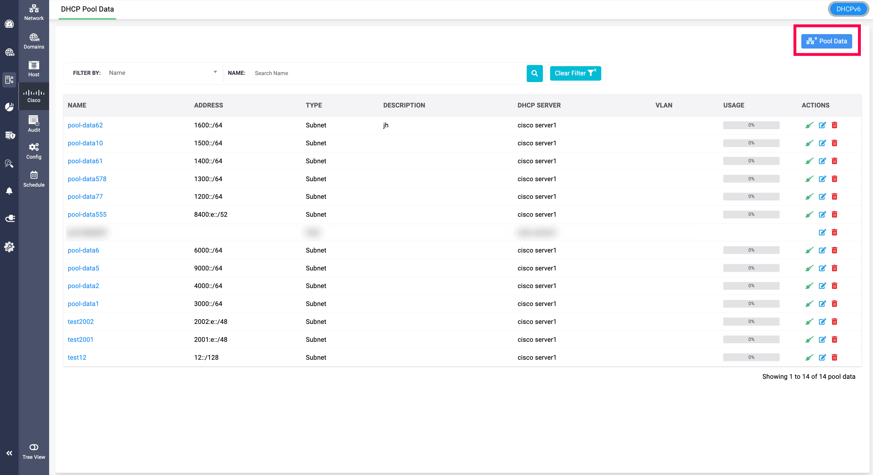 Admins can add new DHCP pool data by clicking on Add Pool data: