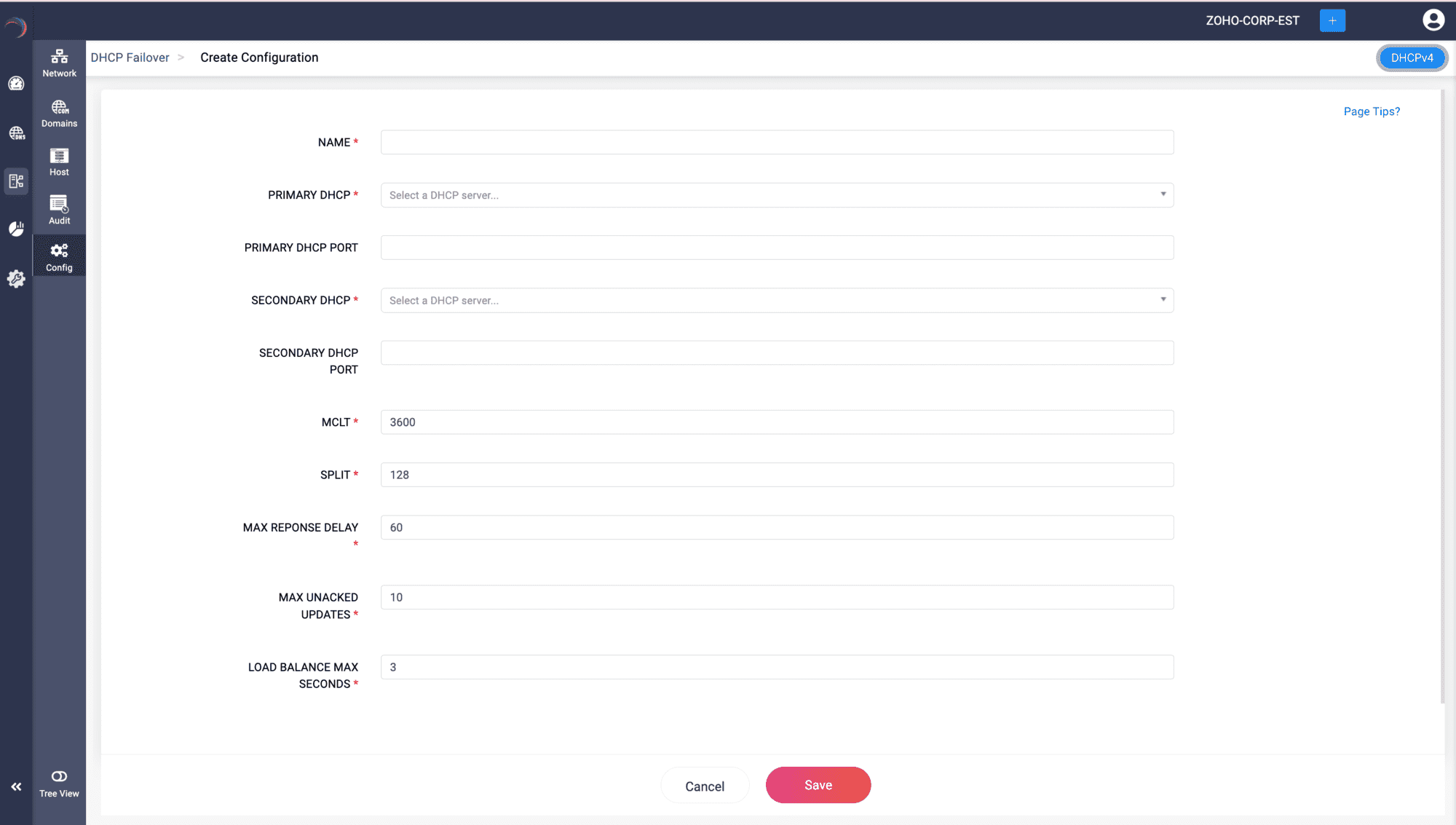 Note: DDI Central does not offer DHCP failover for IPv6 address space. Failover is only available for IPv4 address space.