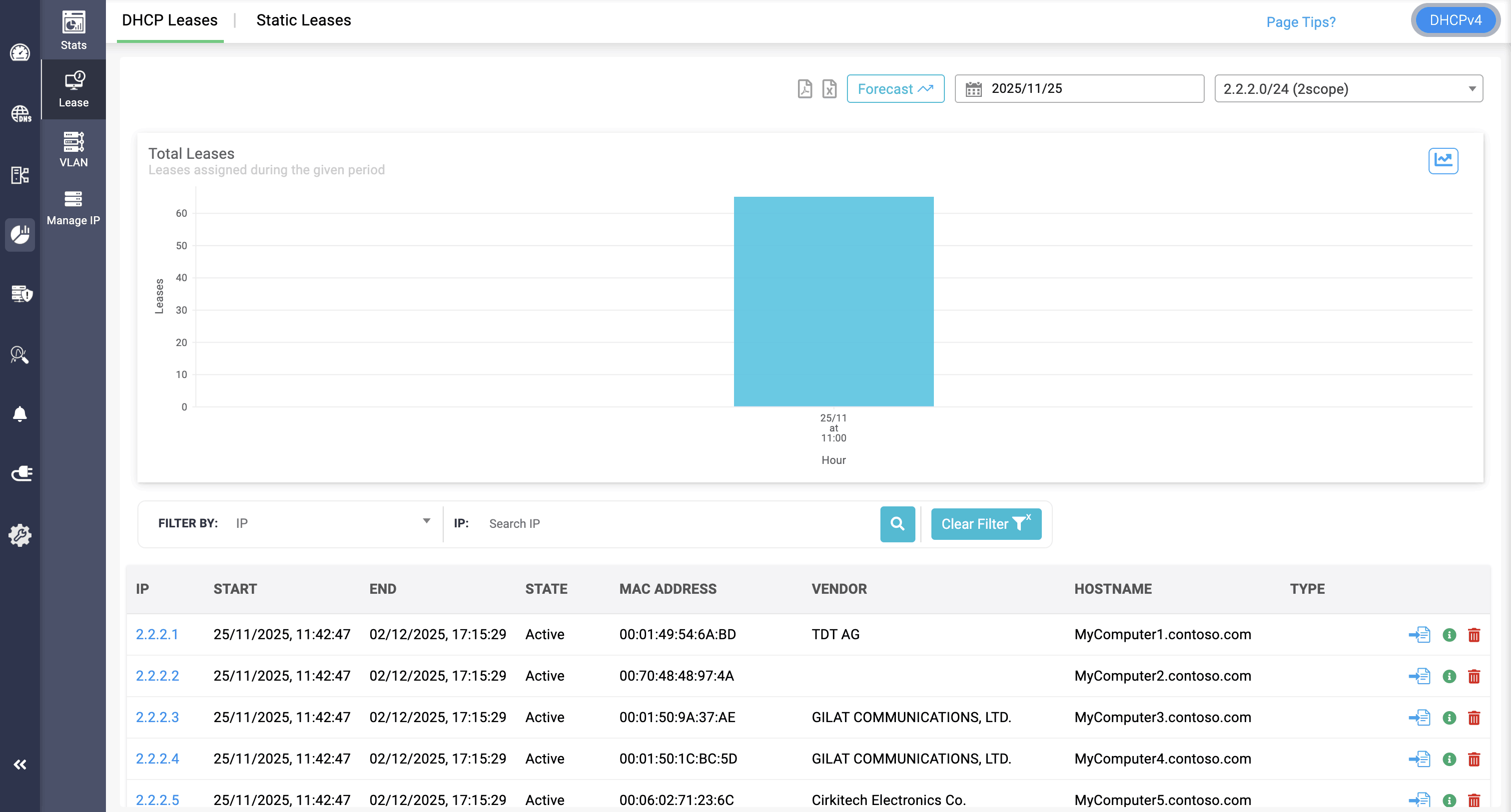 Note: DHCP lease forecasting is available for both DHCPv4 and v6 addresses in the network.