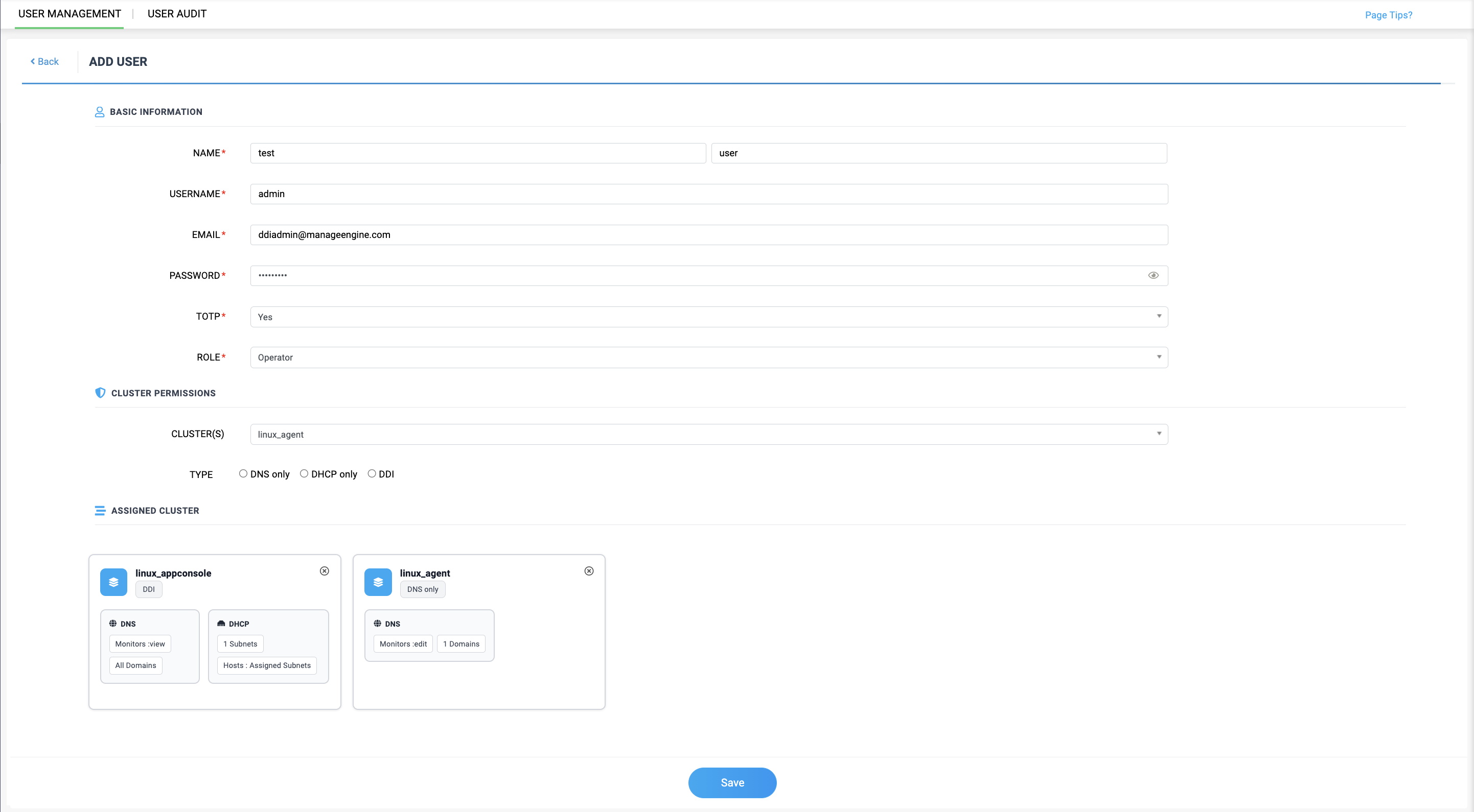 • Click on +Add Cluster Permissions option to save the configurations, and click on Save to add the user with the access permissions in the network.