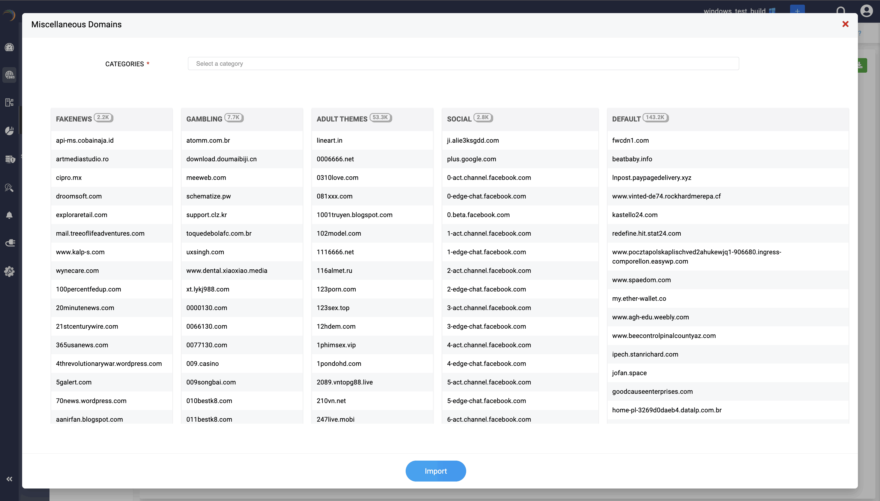 - You can bulk import a customized list of malicious domains via CSV import for quicker addition. You can also block as many categories based on your organizational needs.