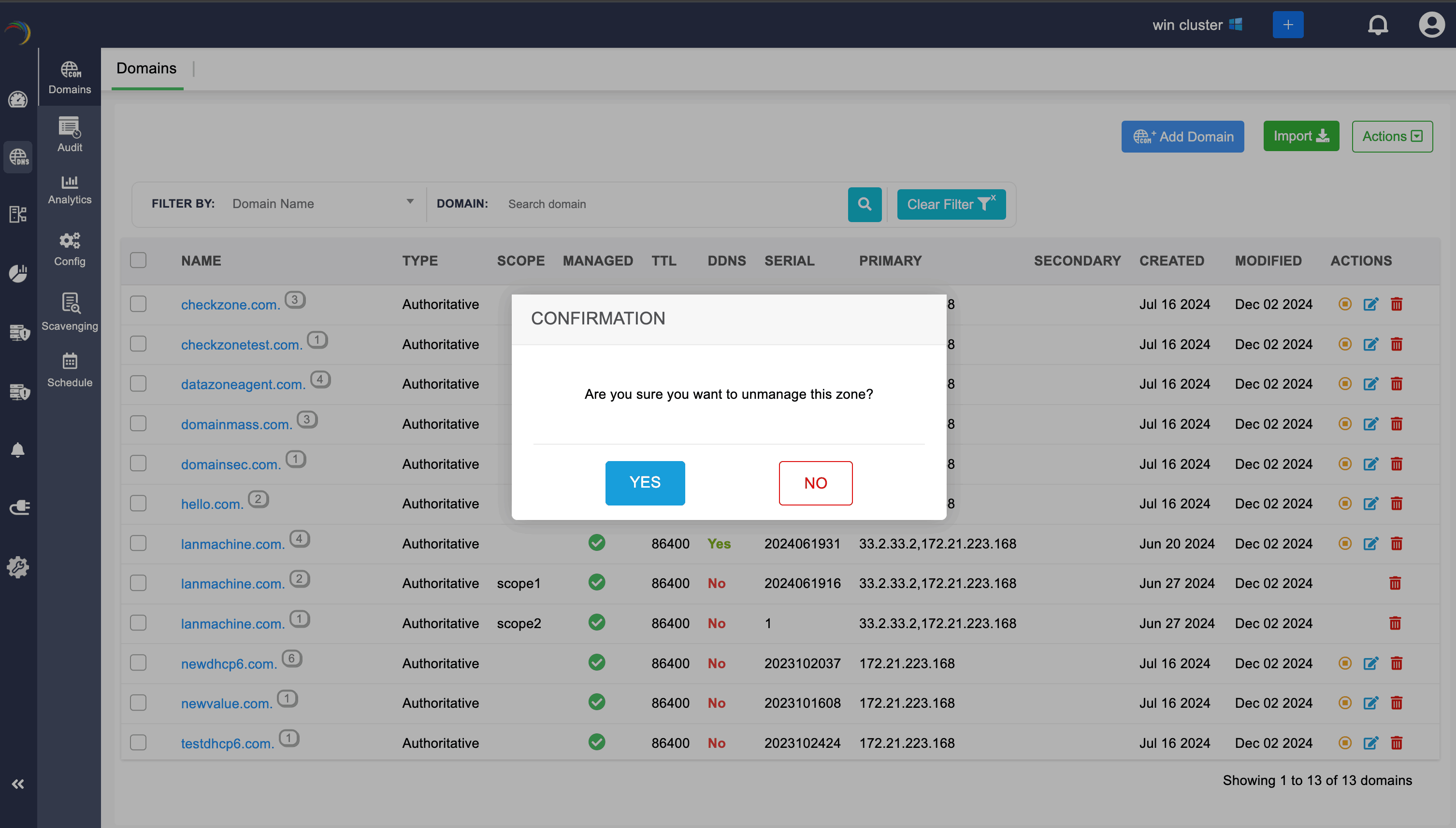 Managing and Unmanaging DNS domains in DDI Central Windows
